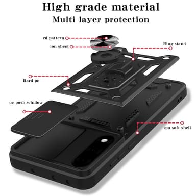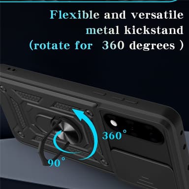 Oplev ultimativ beskyttelse og funktionalitet med Armor Metal Ring Kameraskyder. Dette cover er designet til at give din telefon et elegant udseende, samtidig med at det beskytter mod hverdagens udfordringer. Den indbyggede roterbare ring gør det nemt at bruge telefonen med én hånd og justere betragtningsvinklen, mens den magnetiske holders kompatibilitet sikrer stabil placering i bilen.
