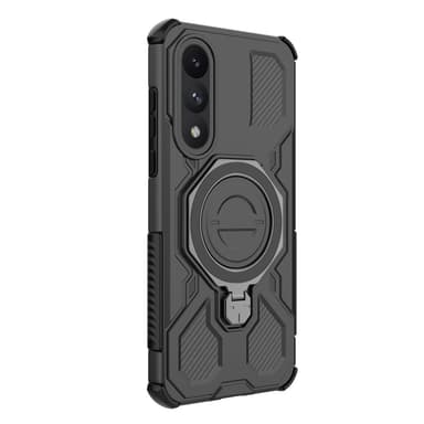 Dette mobilcover kombinerer holdbarhed og lav vægt med materialer af hård PC og blød TPU. Det indbyggede 360° roterbare metalstativ gør det nemt at justere telefonens vinkel for bedre brugervenlighed. Coveret understøtter magnetisk tilslutning og er kompatibelt med MagSafe og andre magnetiske tilbehør, hvilket øger anvendeligheden. Den solide konstruktion giver effektiv beskyttelse mod stød, og installationen er hurtig og værktøjsfri.
