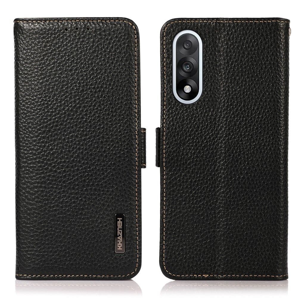 SKALO OnePlus Nord 5 KHAZNEH Litchi Ægte Læder Flip Cover - Sort