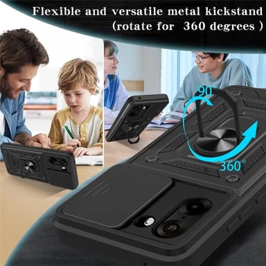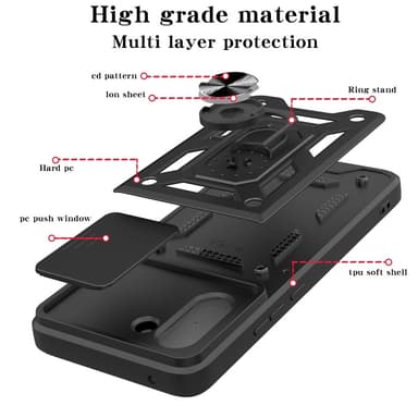 Oplev ultimativ beskyttelse og funktionalitet med Armor Metal Ring Kameraskyder. Dette cover er designet til at give din telefon et elegant udseende, samtidig med at det beskytter mod hverdagens udfordringer. Den indbyggede roterbare ring gør det nemt at bruge telefonen med én hånd og justere betragtningsvinklen, mens den magnetiske holders kompatibilitet sikrer stabil placering i bilen.