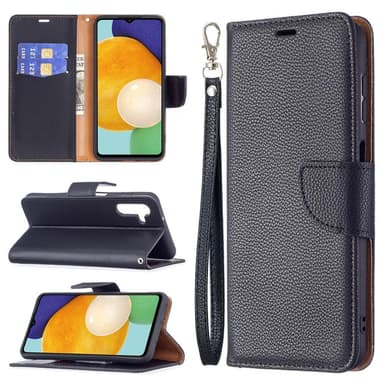 SKALO Samsung A13 5G Premium Litchi Flip Cover - Sort