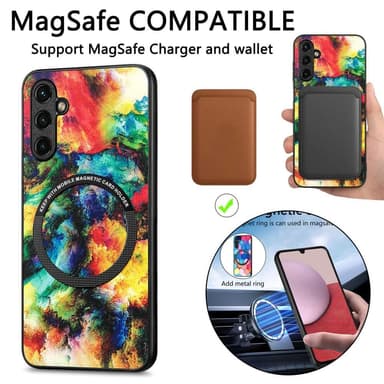 Et slankt cover med et trykt design og en magnetisk ring på bagsiden, der beskytter din telefon mod snavs, ridser og stød.