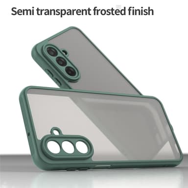 Frosted Color Bumper beskytter din telefon med stil. Kombinationen af blødt TPU og hårdt PC giver omfattende beskyttelse, mens det frostede, gennemsigtige design fremhæver din telefons oprindelige skønhed. Designet er præcist udformet med integrerede 3D-knapper og luftpuder i alle hjørner for ekstra beskyttelse mod stød. Nem at montere og afmontere uden at ridse telefonen.