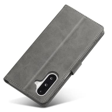 Dette stilfulde cover er fremstillet af PU-læder med kalvestruktur og TPU-materiale, hvilket giver en blød fornemmelse og elegant finish. Det giver 360 graders beskyttelse og kombinerer funktionalitet med æstetik. Med to kortlommer, en fotolomme og et kontantrum kan du lade pungen blive hjemme. Det foldbare stativ giver justerbare vinkler til håndfri visning, og den stærke magnetlukning holder telefon, penge og kort sikkert på plads. Et reserveret hul til højtaleren gør det muligt at tale med coveret lukket.