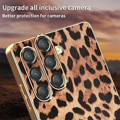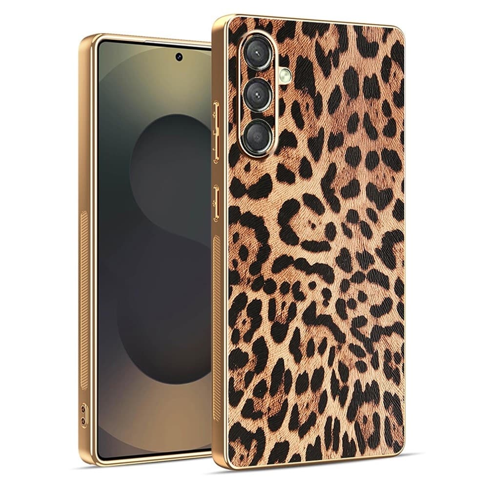 Dette mobilcover har et markant leopardmønster med elegante guldelektropladerede kanter, som giver en stilfuld og luksuriøs æstetik. Det er fremstillet af PU-læder med en blød TPU-ramme og en hård PC-bagside, hvilket sikrer både fleksibilitet og solid beskyttelse. Den elektropladerede overflade forhindrer falmning og bevarer glansen over tid. Præcise udskæringer giver nem adgang til kamera, porte og knapper. Den fleksible ramme muliggør hurtig og ridsefri montering.