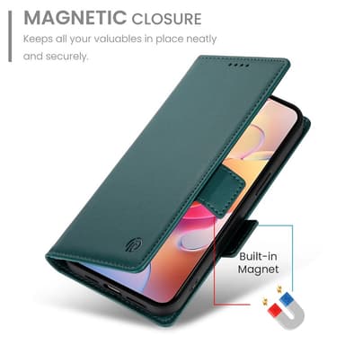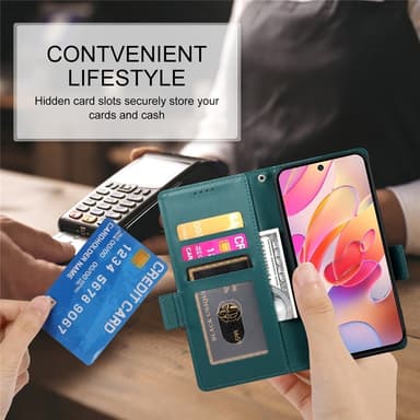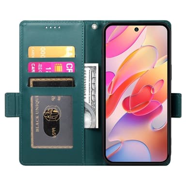 Dette cover er fremstillet med en blød TPU-inderskal og en ydre overflade af PU-læder, hvilket giver holdbarhed og en eksklusiv fornemmelse til langvarig brug. Det multifunktionelle design har tre kortlommer og en kontantlomme, så du kan have det vigtigste med uden behov for en separat pung. Magnetiske sidelåse sikrer nem og sikker adgang til både telefon og kort, og holder alt på plads. Coveret kan nemt foldes til et stativ, ideelt til at se videoer eller foretage videoopkald håndfrit. Det giver fuld beskyttelse mod stød og ridser, samtidig med at det bevarer et slankt, stilrent og elegant udseende.