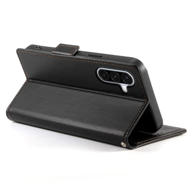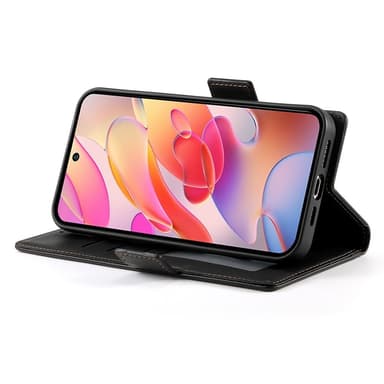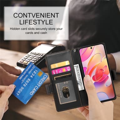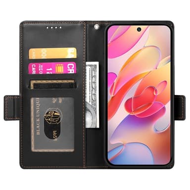 Dette cover er fremstillet med en blød TPU-inderskal og en ydre overflade af PU-læder, hvilket giver holdbarhed og en eksklusiv fornemmelse til langvarig brug. Det multifunktionelle design har tre kortlommer og en kontantlomme, så du kan have det vigtigste med uden behov for en separat pung. Magnetiske sidelåse sikrer nem og sikker adgang til både telefon og kort, og holder alt på plads. Coveret kan nemt foldes til et stativ, ideelt til at se videoer eller foretage videoopkald håndfrit. Det giver fuld beskyttelse mod stød og ridser, samtidig med at det bevarer et slankt, stilrent og elegant udseende.