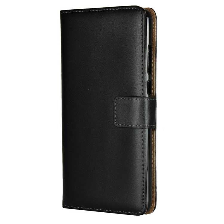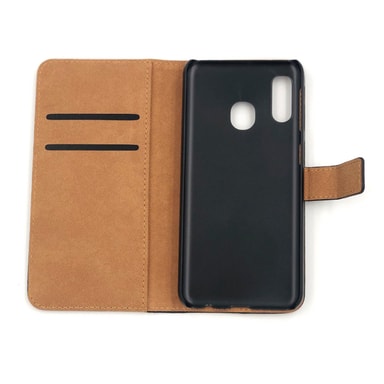 SKALO Samsung A20e Flip Cover m. Pung i Ægte Læder - Sort