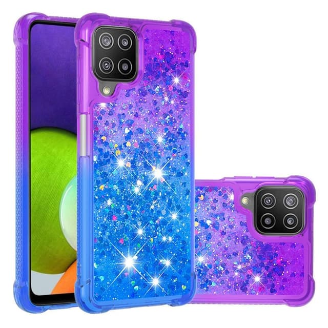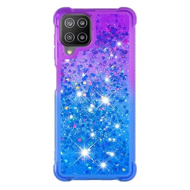 En TPU-cover med flydende væske med glitter og hjerter, der beskytter godt mod stød og faldskader.