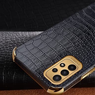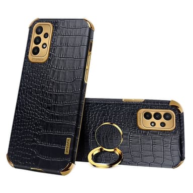 SKALO Samsung A23 5G Crocodile Guldkant Cover - Sort