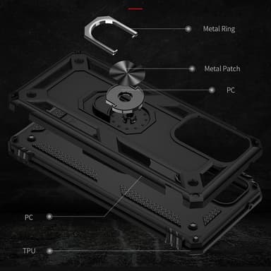 En stødsikker Armor-cover med et stilfuldt udseende med en ring på bagsiden for bedre greb.