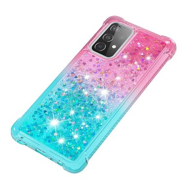 SKALO Samsung A52/A52s Kvicksand Glitter Hjerter TPU Cover - Pink-Turkis