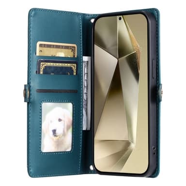Oplev den perfekte blanding af stil og funktionalitet med vores PU-læderetui. Det elegante design og holdbare PU-læder giver et sofistikeret look, mens de praktiske funktioner gør din hverdag nemmere. Etuiet beskytter din telefon mod ridser og stød og har indbyggede kortholdere og en pengelomme, så du kan have alt det vigtigste med dig på farten. Den foldbare stand gør det nemt at se film eller videoer, og den medfølgende håndledsrem sikrer, at du altid har et fast greb om din telefon.