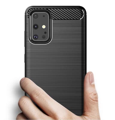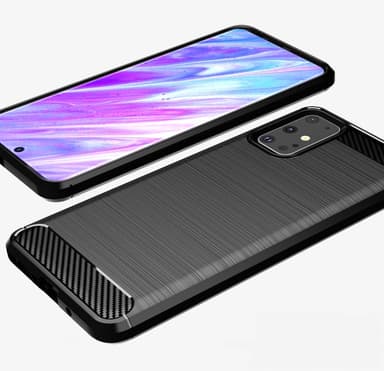 En stødsikker Armor Carbon-cover i TPU med et stilfuldt kulfiberlook.