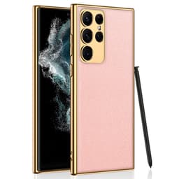 SKALO Samsung S23 Ultra PU-læder Gold Edge Cover - Pink