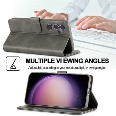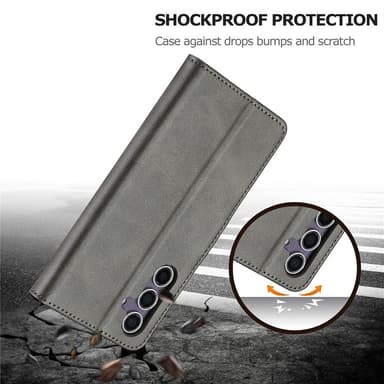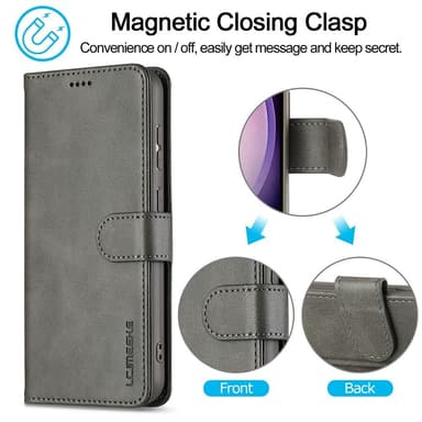 Dette stilfulde cover er fremstillet af PU-læder med kalvestruktur og TPU-materiale, hvilket giver en blød fornemmelse og elegant finish. Det giver 360 graders beskyttelse og kombinerer funktionalitet med æstetik. Med to kortlommer, en fotolomme og et kontantrum kan du lade pungen blive hjemme. Det foldbare stativ giver justerbare vinkler til håndfri visning, og den stærke magnetlukning holder telefon, penge og kort sikkert på plads. Et reserveret hul til højtaleren gør det muligt at tale med coveret lukket.