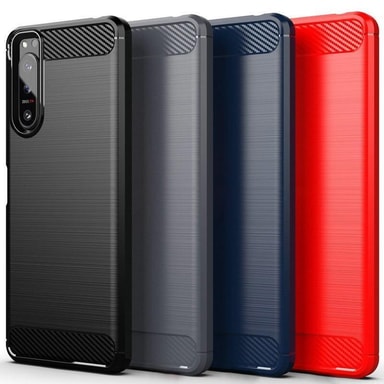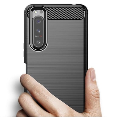 En stødsikker Armor Carbon-cover i TPU med et stilfuldt kulfiberlook.