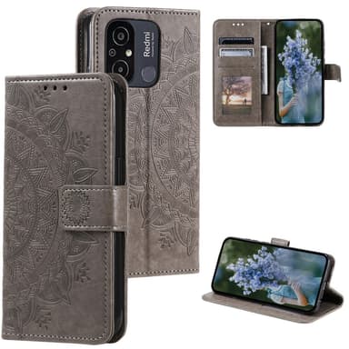 SKALO Xiaomi Redmi 12C 4G Mandala Flip Cover - Grå
