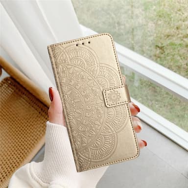 Dette stilfulde mobilcover kombinerer funktion og æstetik med et smukt præget mandalablomst-design. Det er fremstillet af førsteklasses PU-læder og blød TPU indvendigt, hvilket giver holdbar beskyttelse og en eksklusiv følelse.Læs mere om produktet