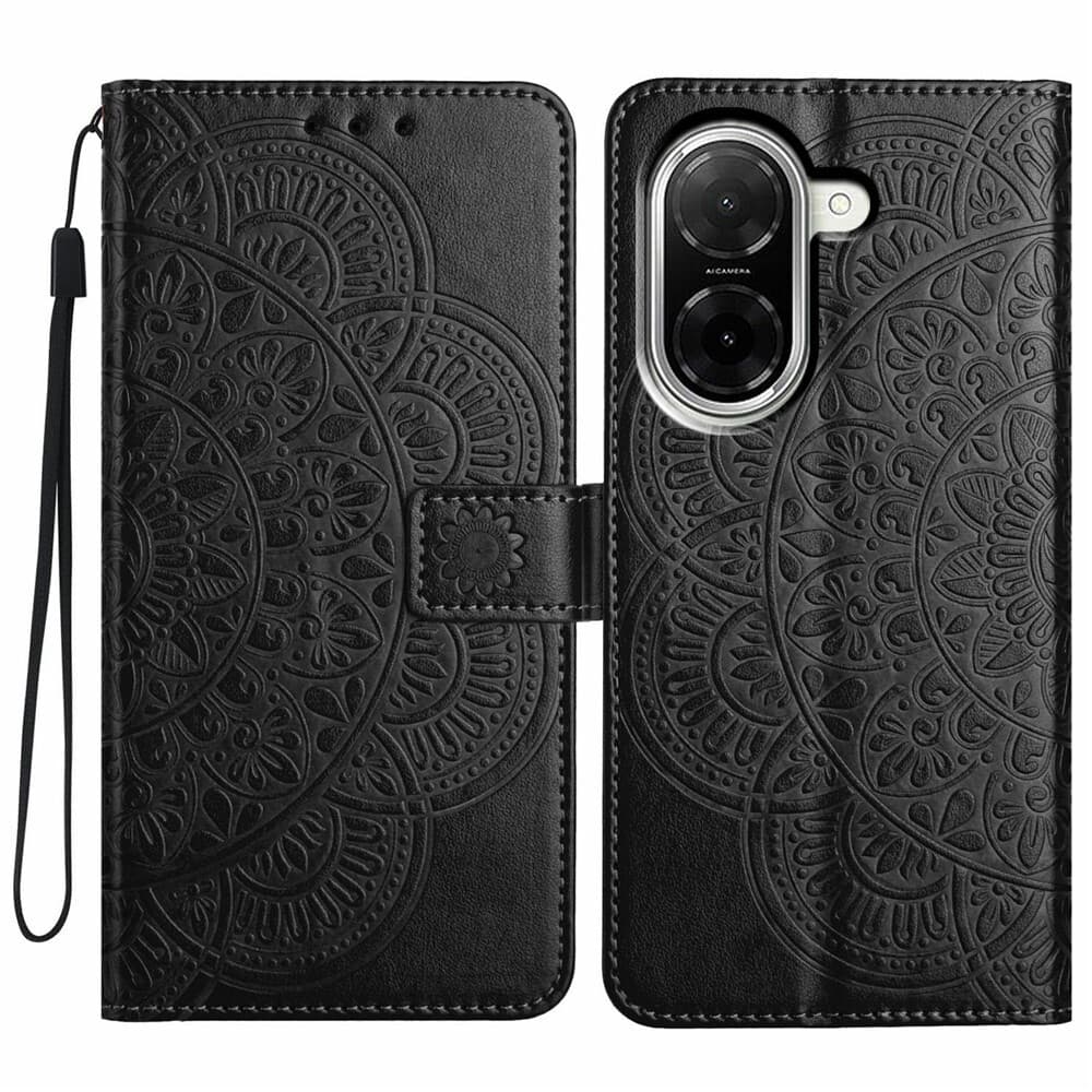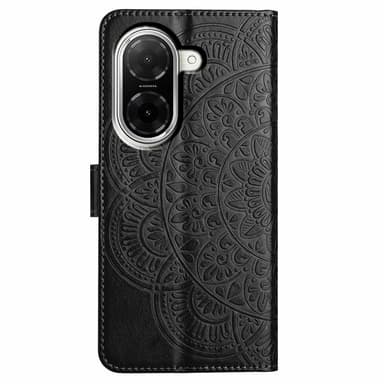Dette stilfulde mobilcover kombinerer funktion og æstetik med et smukt præget mandalablomst-design. Det er fremstillet af førsteklasses PU-læder og blød TPU indvendigt, hvilket giver holdbar beskyttelse og en eksklusiv følelse. Med tre kortholdere behøver du ikke en ekstra pung, og det justerbare stativ giver en behagelig visningsvinkel til håndfri brug. Den stærke magnetlukning holder telefon og kort sikkert på plads, mens håndremmen giver ekstra komfort og sikkerhed på farten.