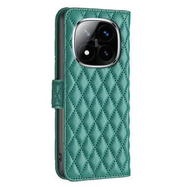 Dette elegante quiltede cover i PU-læder og TPU beskytter din telefon mod hverdagens slid og stød. Det rhombusformede mønster tilføjer et strejf af stil, mens den indbyggede pungfunktion med tre kortspor og en pengeplads holder dine vigtigste ting samlet. Den magnetiske lukning sikrer dine ejendele, og den justerbare stand giver håndfri visning. Du kan endda besvare opkald uden at åbne coveret takket være den smarte åbning til samtalehøjttaleren.