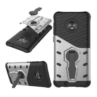 Sniper Cover i to lag, en TPU-cover (silikone) og en plastcover med indbygget 360 ° drejelig stativ / kickstand til fx filmvisning. Stødfast cover af høj kvalitet og stilfuldt design. Model brugerdefineret beskyttelsesdæksel med adgang til kontakter, knapper, kamera osv. Giver adgang til telefonens funktioner. De fire ydre hjørner danner små stødabsorberende luftpuder.