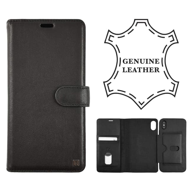 • Sort Ægte læder 2-in-1 iPhone Xs Max etui