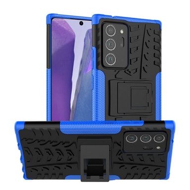 Mobildæksel bestående af to lag, dvs. et TPU-låg (silikone) og et plastikafdækning med et indbygget stativ til fx filmvisning.