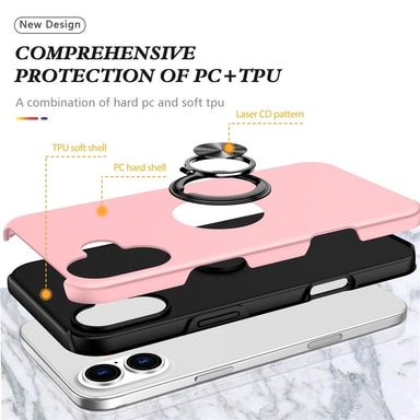 Hybridtelefonetui fulddækkende med ringformet kickstand-design til iPhone 17Integreret ringholder muliggør nem enhåndsbetjening og fungerer også som et 360-graders roterende kickstandIndbyggede CD-mønstrede metalplade kan fastgøres til en magnetisk bLæs mere om produktet