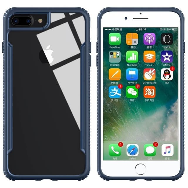 TPU Bumper Glass Case Apple iPhone 7+, 8+ - blå
