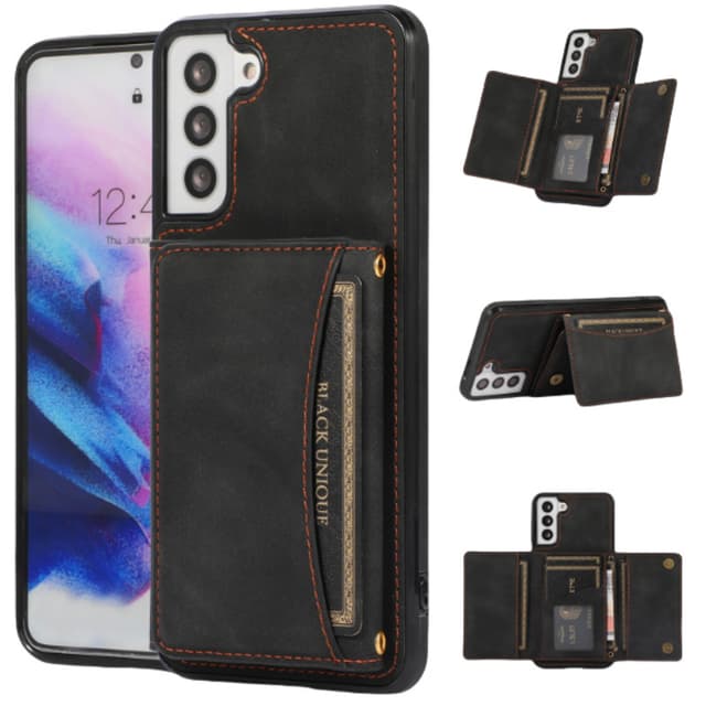 Funktionelt design: Det trefoldede design har flere kortpladser til praktisk opbevaring af dine vigtige kort og kontanter. De præcise udskæringer giver nem adgang til alle porte, knapper og funktioner på din Samsung.