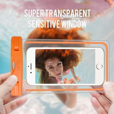 Vandtæt mobil taske, der beskytter din mobil under vand, perfekt om sommeren / ferien, når du svømmer og svømmer. Mobilposen er velegnet til søen, når man svømmer i en pool eller et hav, på et vandlegeplads, ved camping, friluftsliv osv. Du kan også navigere på skærmen under vandet gennem den gennemsigtige plastik, så du f.eks. Kan tage spændende undervandsbilleder.