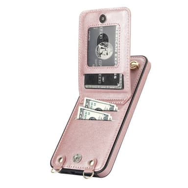 Elegant og praktisk cover med skulderrem og smart opbevaring til kort og andre vigtige genstande. Skulderrem med justerbar længde muliggør brug om halsen eller som skuldertaske. Karabinhager kan fastgøres til horisontal eller vertikal positionering. En skjult magnetisk lukning holder kort og tilbehør sikkert på plads. En lynlåslomme til mønter, som også kan bruges som støttefunktion.