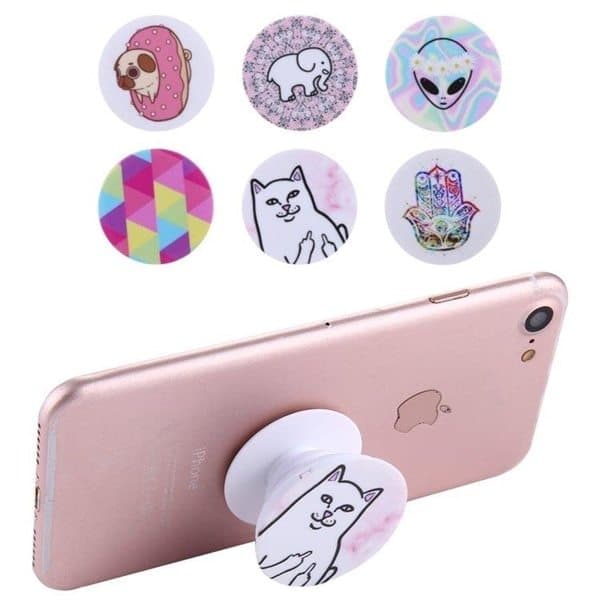 Selvklæbende greb som fæstes på mobilens cover eller bagstykke. Gør det enkelt at holde i mobilen med bare to fingre.
