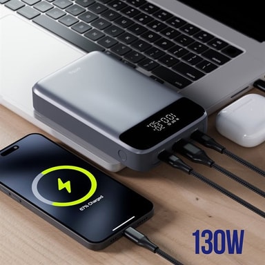 • Kapacitet på 19200 mAh og effekt op til 130 W