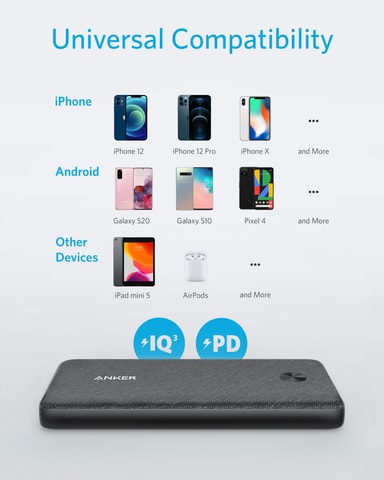 Hold din telefon opladet på farten med Anker PowerCore Sense 10000 mAh powerbanken. Den har en massiv kapacitet på 10.000 mAh, en USB-C-strømforsyningsport, samt to USB-A-porte med op til hurtige 20 W opladningshastigheder.Læs mere om produktet