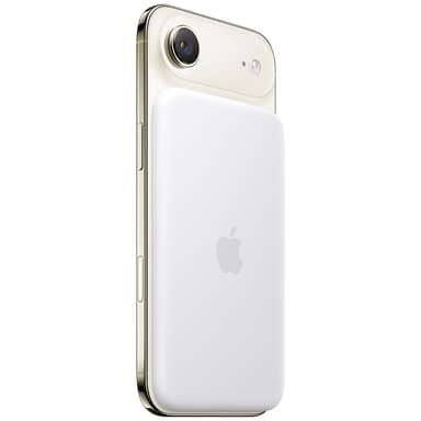 iPhone Air MagSafe-batteriet er tyndt, let og giver 65% mere strøm, som det administrerer intelligent. Det tilbyder op til 12W trådløs hurtigopladning og oplader hurtigere med en 20W+ strømadapter.Læs mere om produktet