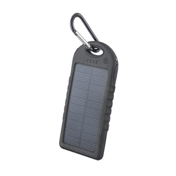Solcelleladeren består af et solpanel på oversiden som er koblet til et kraftigt genopladeligt 5000mah Li-Ion batteri.