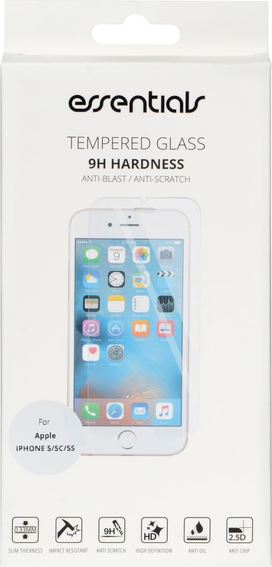 Hold skærmen på din iPhone SE, 5, 5C og 5S fri for ridser med denne Essentials skærmbeskytter. Den er fremstillet af ægte hærdet glas og er stødresistent med en tykkelse på kun 0,33 mm, hvilket gør den næsten usynlig.Læs mere om produktet
