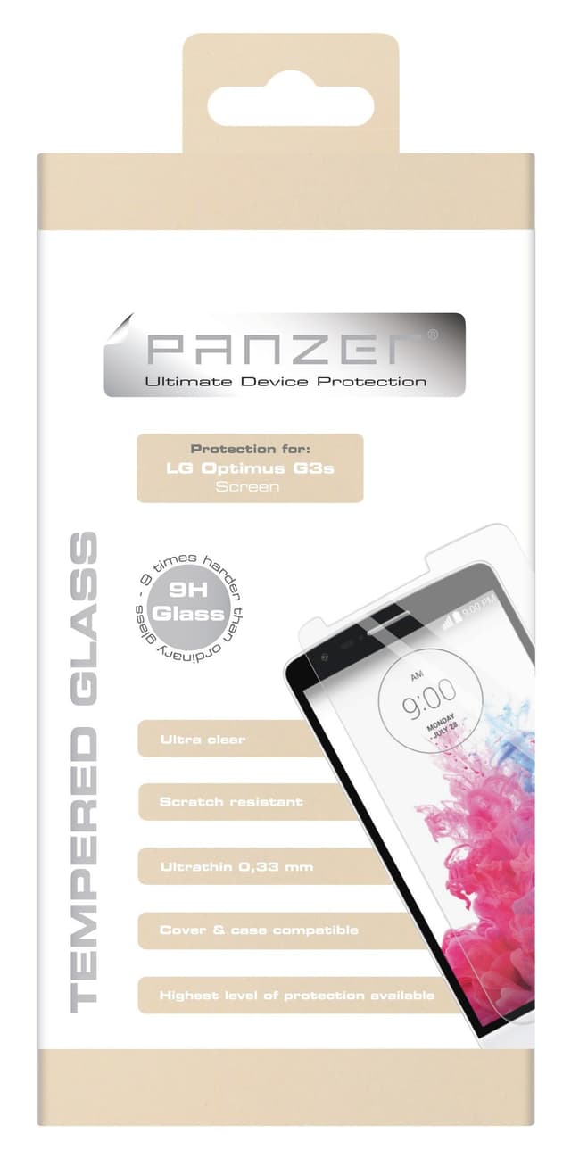 Panzer beskytter skærmen på din LG G3S. Når glasset er påført, er der ingen luft imellem skærm og glasset, hvilket gør skærmens følsomhed uændret. Overfladen er lavet af hærdet glas, som styrker holdbarheden.