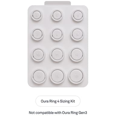 Takket være Oura Ring 4 størrelsessættet kan du finde din perfekte størrelse. Sættet indeholder størrelserne 4 til 15, så du kan teste og finde den ringstørrelse, der passer til din pege-, lang- eller ringfinger. Hvert sæt leveres med en kuponkode.Læs mere om produktet