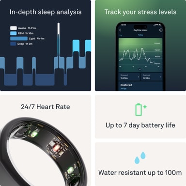 Oura-ring Gen3 Heritage smart-ringen sporer dine aktiviteter og giver dig indsigt i dine helbreds- og aktivitetsdata, samtidig med den er elegant. Derudover har den puls-, blodilt-, søvn- og stressovervågning, samt en batterilevetid på op til 7 dage.Læs mere om produktet
