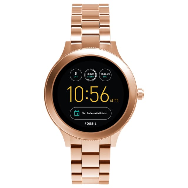 Design: Designet til kvindelige teknikfans – Fossil Q Venture smartwatch kommer i et elegant design med hus i rustfrit stål, der er beklædt med rose gold. Har du ikke en fast stil, så lader dette smartwatch dig vælge mellem flere urskiver, så du kan finde den, som passer bedst til nuværende humør eller til en særlig begivenhed.