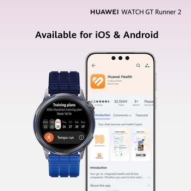 Huawei Watch GT Runner 2 smarturet bringer præcision til din fitnesstræning. Designet til atleter og fitnessentusiaster med sin 1,32" AMOLED-skærm, ultrapræcis GPS, Intelligent Marathon Mode og avanceret sundhedsovervågning. Fremstillet af førsteklassesmaterialer og med en batterilevetid på 14 dage er den bygget til at følge med din aktive livsstil, uanset om du bruger en iOS- eller Android-enhed.