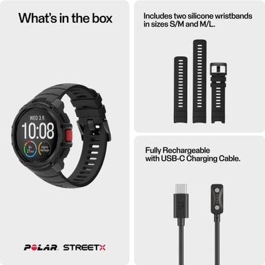 Polar Street X sportsuret S-L kombinerer et holdbart design med en 1,28" Gorilla Glass 3 AMOLED-skærm, færdiglavede træningsprogrammer, Precision Prime™ Optical Heart-Rate Tracking og indbygget GPS med barometer.Læs mere om produktet