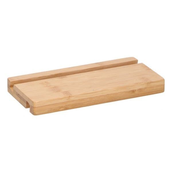 Flot og praktisk mobilholder / smartphonestativ i bambustræ, som passer til de fleste mobiltelefoner og tablets.