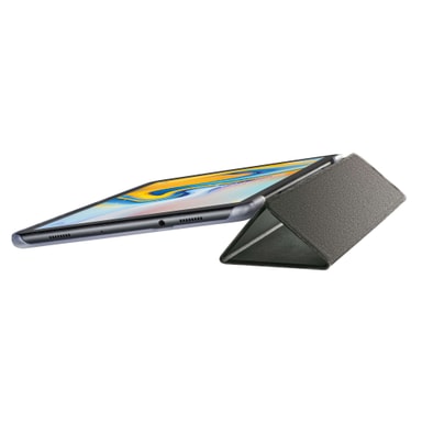 Cover til samsung tablet galaxy tab a fold-clear 10.5"""" stander funktion til nem placering af enheden i to trin perfekt til surfing, skrive e-mails eller se videoer åbninger for fuld adgang til forbindelser og betjeninger enheden kan forblive i coveret mens den anvendes behagelig arbejdsstilling og beskytter samsung galaxy tab a 10.5"""" mod snavs, støv og ridser. Den integrerede magnet tænder enheden når låget åbnes, og slukker det når det lukkes.