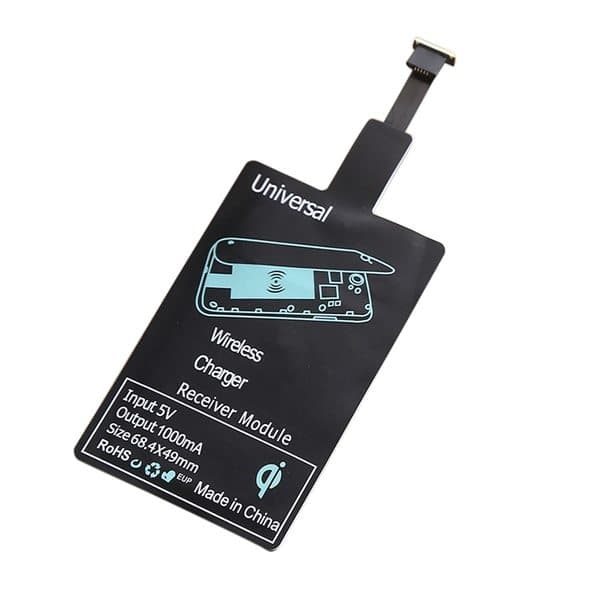 Qi-opladningsplade - kort til opladning med micro USB-kontaktDette smarte tilbehør til smartphones som oplader via micro USB gør så du kan oplade batteriet trådløst i din smartphone med en Qi-ladestation. Installeres nemt på bagsiden af din telefon hvorefter du kan supplere med et valgfrit cover.5V, 1000mA