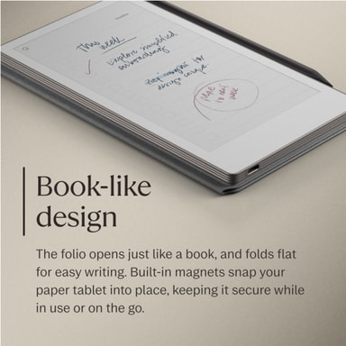 De indbyggede magneter holder din reMarkable Paper Pro Move sikkert på plads. Magneterne er stærke nok til at holde din enhed, men tillader samtidig nem aftagning når det er nødvendigt, hvilket giver både sikkerhed og bekvemmelighed.