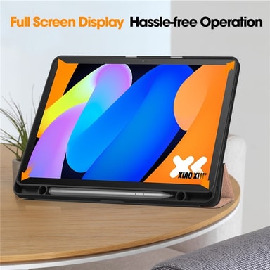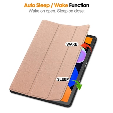Elegant cover fremstillet af fint PU-læder med et indvendigt TPU-etui, der kombinerer stil og funktion. Det smarte tri-fold design giver en stabil og fleksibel stander til nem visning og skrivning. Den bløde mikrofiberforing beskytter skærmen mod ridser og snavs. Præcise udskæringer sikrer fuld adgang til alle porte og knapper. Praktisk penneholder holder styr på din pen (pen medfølger ikke). Coveret understøtter automatisk vågne- og dvalefunktion for at spare batteri.